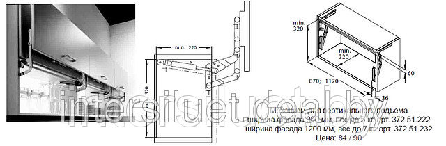 Механизм вертикального подъема двери 900-1200мм, Hafele